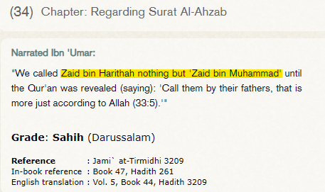 Did you see that, Zayd is considered as his own son. Read the Sahih Jami` at-Tirmidhi 3209